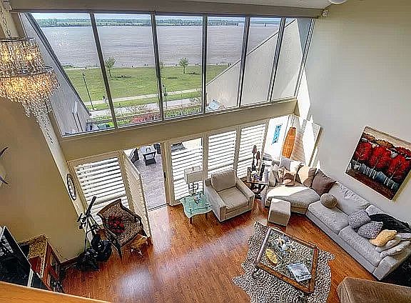 Unobstructed view of both bridges and Tom Lee Park. Gated with 24 hour security guard. HUGE 20 foot tall windows looking out on the River. Condo renovated in November of 2020: new carpet, freshly painted, closet added in master bedroom, builtins added in living room, modern rail added in loft, kitchen cabinets and light fixtures. This was Henry Turley's private residence.