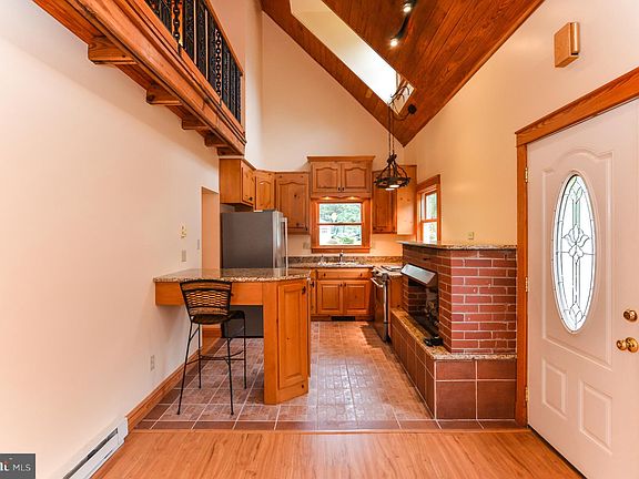 Custom renovation features stunning ironwork on spiral staircase & loft balcony. Light filled open floor plan w/ bedroom & bath on each level. Beautiful brick gas fireplace in kitchen with breakfast bar. Back patio connects to extraordinary pool/spa house & bonus room over carport w/ heat & AC. Ready for year-round enjoyment or weekend retreat property. Vol HOA w/swimming beach, marina, clubhouse.
