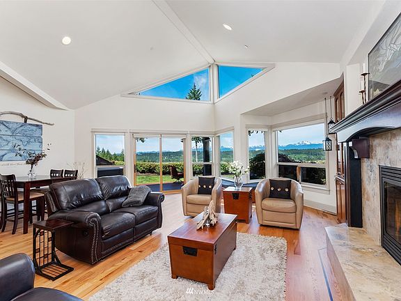 Astonishing Olympic Views - 100% unobstructed (& will be forever) at an eagle eye vista! This intimate, luxury Villa complex is privately perched atop Romance Hill - unless you meander up the hill you would never know it's there. Truly a RARE gem - single level, mint condition, safe, perfect for snowbirds! One step inside, as you pick your jaw back up from gleaming wood floors, you'll know you're home! 18 ft cathedral ceilings & windows take you straight to the views but don't miss the rest! Gorgeous built ins around the fireplace & in the primary suite, newly renovated baths, cabinets to the ceiling, fab office nook, attached garage. Special bonus of this end unit is the YARD - multiple patios for dining & relaxing w/ the vistas.