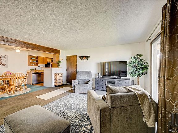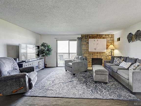Centrally located near Belmar shopping, dining, parks, trails, Lakewood cultural event center and more!. Plus, you are 2 minutes from 6th avenue allowing a quick and easy commute to Downtown Denver or I-70. This sunny 2nd floor unit offers a spacious family room with cozy wood fireplace, sliding glass doors to the balcony-perfect for relaxing and watching sunsets, kitchen with newer stainless steel refrigerator and eating area to sit and enjoy your favorite meals. Plus, this unit has a remodeled 1/2 bath with stacked washer and dryer, guest bedroom with mountain views and the primary bedroom has a large closet, private balcony, and updated private full bathroom. This unit has 2 reserved parking spaces near by. HOA includes pool, trash, water, and snow removal. Complex grounds and pool are very well maintained!