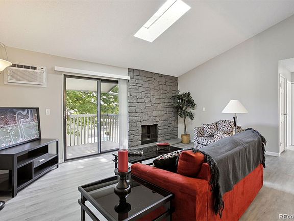 Gorgeous 3rd floor unit offering a spacious living room with wood fireplace, luxury vinal flooring, new paint, sky light, vaulted ceilings, sliding glass doors to the balcony-perfect for relaxing. Kitchen with new cabinets, stainless steel appliances, granite countertops and eating area to sit and enjoy your favorite meals. Centrally located near Belmar shopping, dining, parks, trails, Lakewood cultural event center and more! Plus, you are 2 minutes from 6th avenue allowing a quick and easy commute to Downtown Denver. This unit has two remodeled baths and bonus in-unit washer and dryer, guest bedroom with large closet and the primary bedroom has a large closet, private balcony, mountain views and updated private full bathroom. This unit has 1 reserved parking space and a 1 car garage with storage. HOA includes pool, trash, water, heat and snow removal. Complex grounds and pool are very well maintained!!