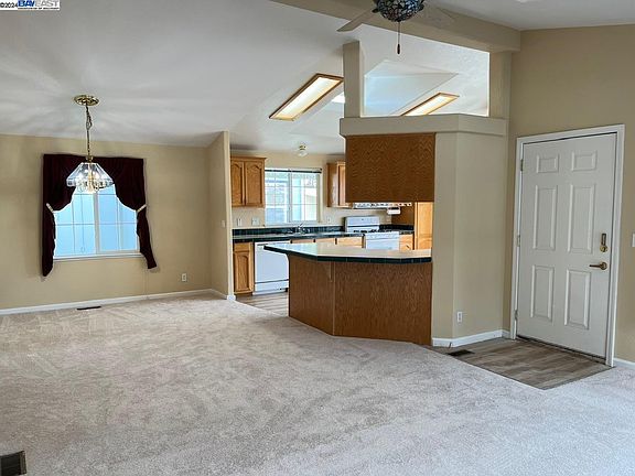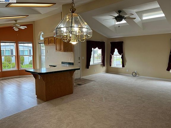 Newer manufactured 3 bedroom, plus a den, 2 bath home in the desirable Mission Bay community. Freshly painted interior and exterior. New flooring thru out. Living room with vaulted ceilings open to the dine area and kitchen. Breakfast area in the kitchen with lots of natural light. Den, great for a home office, or retreat area. Primary bedroom with primary bath, featuring dual sinks, stall shower, walk in tub, and lots of linen storage. Enjoy morning coffee on the newly redone front porch. Large storage shed at the rear of the carport, A/C and lots more.