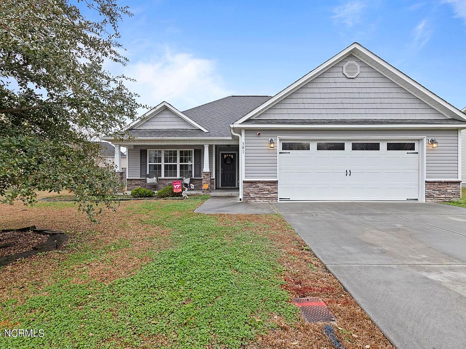 Tucked away in the popular subdivision of Carolina Plantations, this beautiful 3 bedroom, 2 bath home has much to offer! Boasting a high ceiling and new luxury vinyl plank flooring (2022), step inside to allow this immaculately kept home welcome you with a light and airy living room. Continue on into the kitchen, where any chef would feel at home! The kitchen has an island that is perfect for entertaining, a large pantry, ample counter and cabinet space and an eat in dining area. The primary bedroom can become your own personal oasis, with a large walk in closet and luxurious primary bathroom. Down the hall you will find two sizable bedrooms, another full bathroom, and a laundry room(the washer and dryer convey!). This home was updated with fresh paint in 2021. Carolina Plantations is conveniently located to local restaurants, shopping, Camp Lejeune, is close to Carolina Forest Elementary School, and is located just outside city limits, so you can enjoy the low taxes. Schedule your showing today!