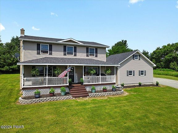 EXCEPTIONAL 4 BEDROOM, 3 BATHROOM COLONIAL HOME ON 1 ACRE WITH MILLION DOLLAR VIEWS IN CHERRY RIDGE TOWNSHIP, HONESDALE! This mint condition home has been meticulously maintained & is move in ready! Enjoy the million-dollar views from your plush landscaped front walkway or beautiful front porch. The first floor features a beautiful flowing layout with a kitchen, living, and dining area. The custom eat-in kitchen boasts stunning granite countertops, a sizable eating area, and stainless steel appliances. Luxury vinyl tile flooring adds to the modern aesthetic of the home. This level also includes a spacious living area for relaxing. On the second floor, you'll find four large bedrooms, including a primary suite with a walk-in closet, jacuzzi tub, and a walk-in shower. Additional oversized bedrooms and bathrooms ensure ample accommodation for guests. The finished lower level features a spacious family room and workout area with wall-to-wall carpeting and a bar area, perfect for entertaining. Additional features of this home include an expansive, attached two-car garage ideal for parking and storage. The large yard is just minutes from Wayne Highlands School District. Modern updates throughout ensure a luxurious living experience. This home offers the best of both worlds - a quiet country setting with quick access to downtown amenities. Don't miss the opportunity to own this immaculate colonial Honesdale home.