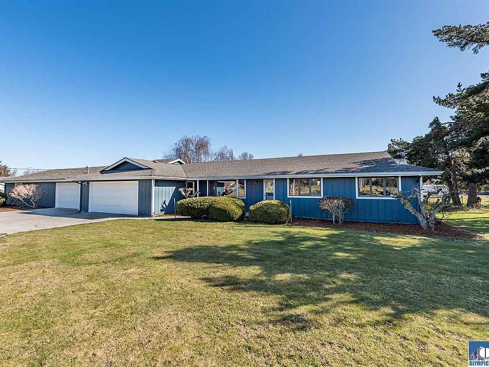 Single level home w/ attached 4-car garage PLUS a large shop space & outbuilding on over 1-acre. Updated w/ fresh paint both inside & out, new laminate flooring throughout, new bathroom light fixtures, toilets & a new refrigerator. Pellet stove fireplace in family room. Olympic Discovery Trail across the road for walking, running, biking, etc. Mature landscaping includes Apple, Pear & Cherry trees plus a freshly graveled driveway to enjoy the view of the Olympic Mountains. Close to Robin Hill Park.