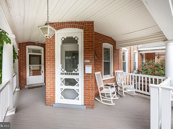 Lovely 4 bedroom twin with a gentle mix of modern convenience and keeping the old world charm. Ductless A/C unit on main floor. Composite front wrap around porch with vinyl railing. Replacement windows throughout 1st and 2nd floor. Newer kitchen floor. Updated bathroom with etched glass half door. Original beautiful wood front door with brass hardware. Deep window sills and high baseboards in most rooms. Brick accent walls in living room and mud room. Exposed hardwood floors. Original wood panel doors with transoms to each bedroom. Additional great features include one of the largest lots on the block, extending across alley in rear; two car parking in rear and a 2 car detached garage; brick exterior; eat-in kitchen with decorative ceiling beams; 3rd floor bedroom/bonus room with cedar closet and extra storage; mud room with oversized pantry & closet. Walk to downtown town and convenient to Route 113 and the PA turnpike.