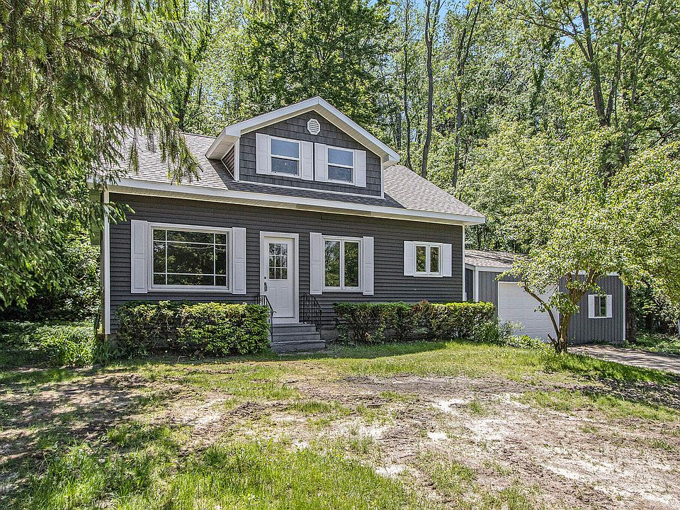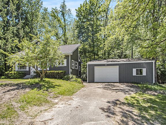 Just in time for Summer! This fantastic 2 bedroom, 2 bathroom home right across from Fine Lake has been updated and re-done from top to bottom! Some of the updates include new siding, new roof, new paint, new flooring, updated HVAC, new garage door, and new LED flood light. As you enter, you'll notice the large living room with plenty of natural light. The kitchen boasts plenty of cabinet and counter space. The two bedrooms are larger and the primary has a fully updated private bathroom. The additional full bathroom has been updated and upgraded as well. There is additional space in the attic that is a blank slate waiting for you! Outside, you'll love the 32' x 32' garage for cars, boats, etc. Delton-Kellogg schools and right near the public access site, this location can't be beat.