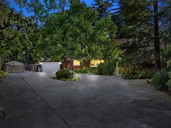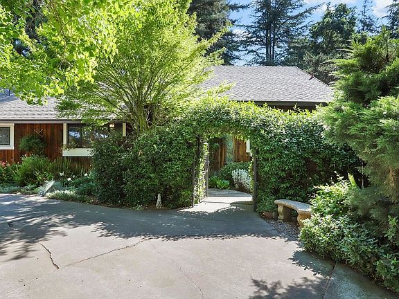 In an enchanted forested area across from Viaggio Winery and behind St. Jorge Winery, sits a private gated fairytale-like home on slightly over 2 acres. When you enter the home, you can see into the back of the home and all of its its beauty. There is a fish pond, a personal spa, barbeque island, gazebo, shaded pathways and stairs down to seasonal Gill Creek. The front of the home has a circular driveway with space for RVs, toys, chickens, etc. Kitchen has custom cabinetry, 6-burner gas Wolf range, restaurant style hood and a wine refrigerator. Great room has wood stove for those cold nights and built-in cabinetry with lighting. Master bedroom is upstairs with vaulted ceilings and sitting area. There is a balcony off of the other upstairs bedroom with a loft space in between. Don't forget the half bath in garage laundry room. The privacy gate has lighting for nighttime guests too.