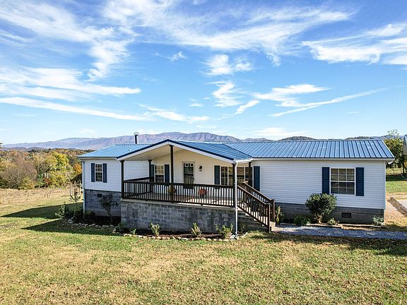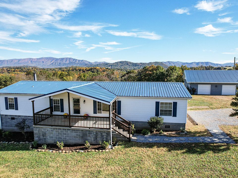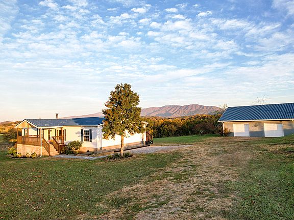 Welcome to 381 Walkers Ford Rd in beautiful East Tennessee! The mountain views from the property are some of the most gorgeous views you will ever experience. The vast fall colors, the snow covered mountain tops, and the blue and grey hues of sunrise and sunset make the Smoky Mountains spectacular and will never cease to amaze you at every season. Enjoy your morning coffee and your evenings grilling on the large back deck with newly installed solar lights. This totally renovated manufactured home, on a permanent foundation, offers 3 bedrooms, 2 full bathrooms, a large family room with built-ins on either side of the stone fireplace, an eat-in updated kitchen, living room, laundry room, and a main bedroom ensuite. There is a dry basement area with upper vapor barrier, and a dirt floor for storage. A 26'x32' detached 2 car garage, with 2 new garage doors ,is an added bonus, for cars, workshop or upper level storage. The yard has been newly landscaped and features apple, pear, peach and crabapple trees. Enjoy the spring blossoms and the fall fruits! New amenities for the home include: interior newly painted, all new pex plumbling, LVP flooring throughout, new light fixtures, black accent knobs and cabinet handles, new vanity, 2 new toilets, new main vanity countertop with new sinks, new stainless steel appliances, new kitchen countertops and sink, new mirrors, new exterior side wall facing parking area and much more. Don't miss this opportunity to own a piece of treasure in the heart of the Smokey Mountains, where the views and the home upgrades will continually astound you. Embrace the charm of East Tennessee living!