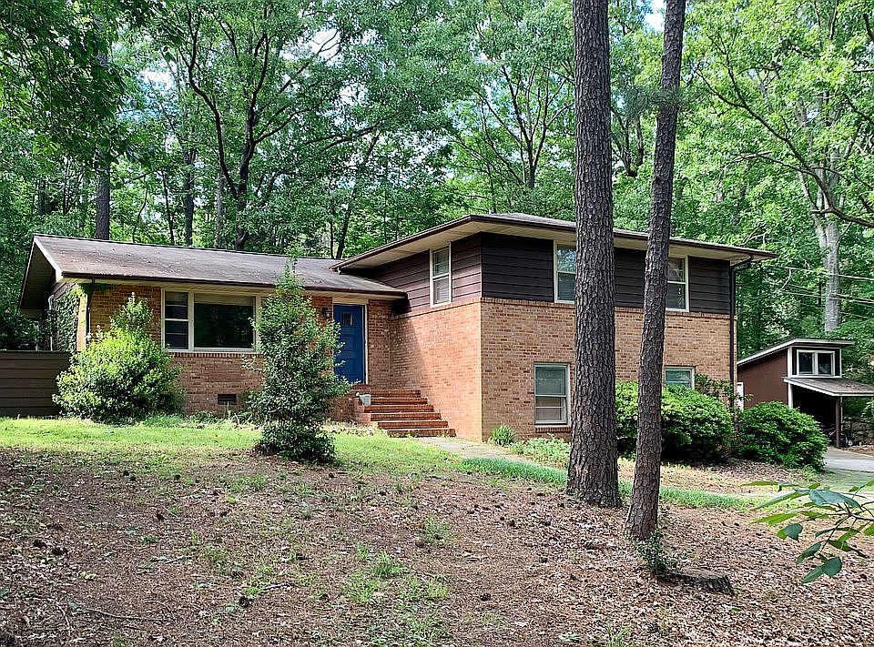 Fun and funky mid-century home, nestled among tall trees and plenty of nature. Lots of room in this five-bedroom home w/extensive hardwoods, a remodeled kitchen (including stainless steel appliances and granite countertops), and a beautiful sunroom added in 2015. Open living room into dining room; spacious bedrooms. Lower level features family room and separate entrance -- could be a home office or in-law suite. Outdoor features include a deck for entertaining, a separate storage shed, and a tree-house! A wonderful home.