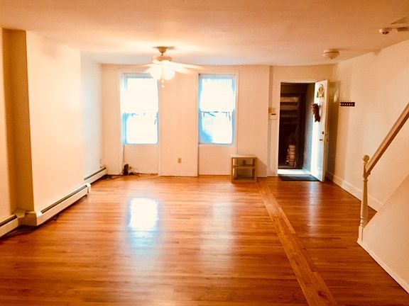 Spacious two bed two bath duplex in a brick row house with lovely private yard and deck in the Van Vorst section of downtown JC. Generous sized bedrooms on upper level w/original pine hardwood floors, good closet space, master bath and light. Massive living room and kitchen perfect for entertaining with yard access from kitchen. Updated baths, washer dryer in unit, tall ceilings, pocket door to master bedroom, storage in basement and heat and hot water included. No pets. Available now!