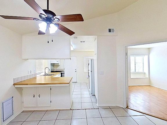 Step inside to find fresh interior paint, newer carpet, raised panel interior doors, and plenty of natural light throughout. The living room features vaulted ceilings and a cozy brick fireplace, ideal for relaxing evenings at home. The recently updated kitchen boasts new Birch wood countertops, a stainless steel sink, appliances, and a refrigerator that stays — ready for all your culinary creations. Enjoy the dining area with a ceiling fan and easy flow from the kitchen.