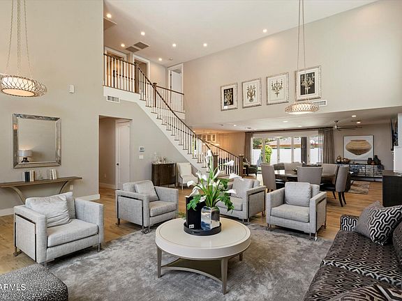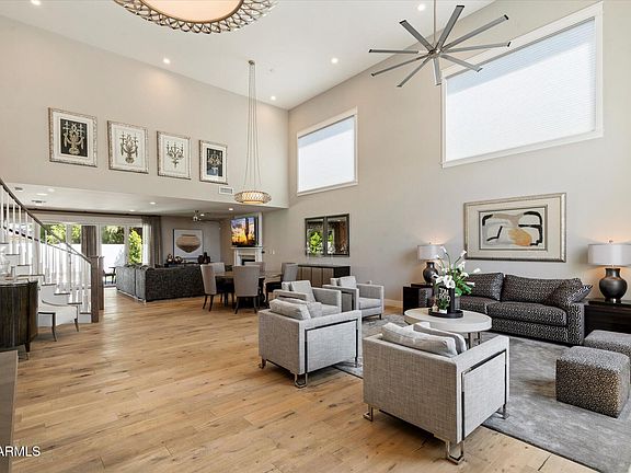 This home from Entry has a Formal Living area, and Dining, open to Family room , informal dining and kitchen. Kitchen has Brzilian Dolomite countertops with Custom White Shaker cabinets all with Oak flooring. Chefs kitchen offering Bertazzoni 36 inch pro style range, auto drawer microwave, wine frige professionalseries Frigidaire Frige and Freezeer combo. 21 foot ceiling, gas fireplace. Master suite offers an oversized bedroom, with island closet, Private balcony facing Camelback Mountains. floor to ceiling walk in shower, tub, dual sinks, private toilet room. Rear yard is accessed with collapsible window/door system. This home is set up for privacy and Entertainment on a Grand scale. Pool, Fireplace, Yard open play areas outside non smoking