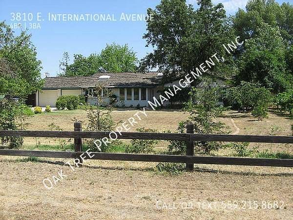AVAILABLE APPROX. MIDDLE TO END OF JUNE! Located in Clovis on acreage near International and Minnewawa, this charming four bedroom + two and a half bathroom home is full of many great features. The spacious 2,700 sq/ft features wood flooring, a large open kitchen with granite countertops, side-by-side stainless steel refrigerator, dual ovens, vaulted ceilings with sky lights, large living and family room, indoor utility room, and lots of storage space. The primary bedroom features a large walk-in closet with built-in shelving and drawers from floor to ceiling, a large shower with dual shower heads, and french doors leading to the backyard. The pasture and shed are not included with the home and not to be used. 11-month lease. Small pets considered with an additional deposit. No farm animals or crops allowed. A refrigerator is provided for tenant's use (no warranty). Tenant to provide their own refrigerator, washer, and dryer. Tenants will be responsible for all utilities including PG&E, water, sewer, trash, and propane. READY TO APPLY?
