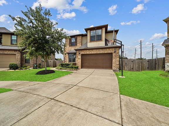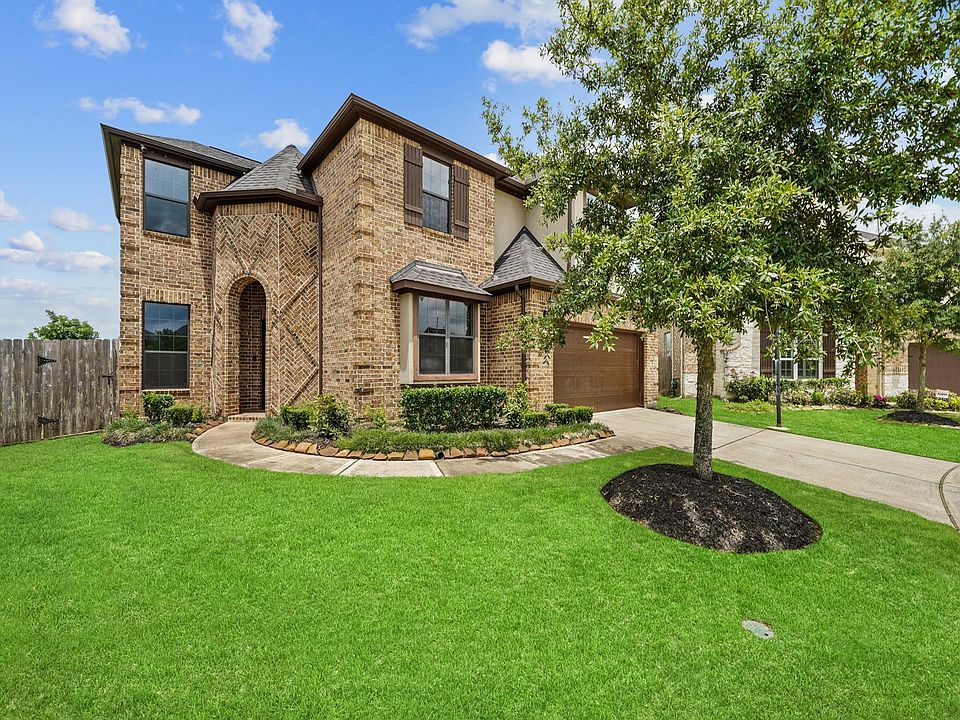 Highly sought after Riverstone community! Built by Newmark Homes. Part of their Artisan Series of home. 2-story home with 4 bedrooms(Primary BR down), 3 full baths, and one half bath downstairs. Large cul-de-sac lot, covered patio with gas line ready for outdoor kitchen and plenty of room for a pool. Open family room to Gourmet kitchen concept with large island w. extended countertop for dining. Upgraded Cabinets and granite countertops. Large primary bedroom downstairs with extended bay window. Ring doorbell and 7 camera security system included along with Ecobee Smart Thermostat. Prewired surround sound system, including patio speakers. Fully Bricked with Stucco accent, full gutters.