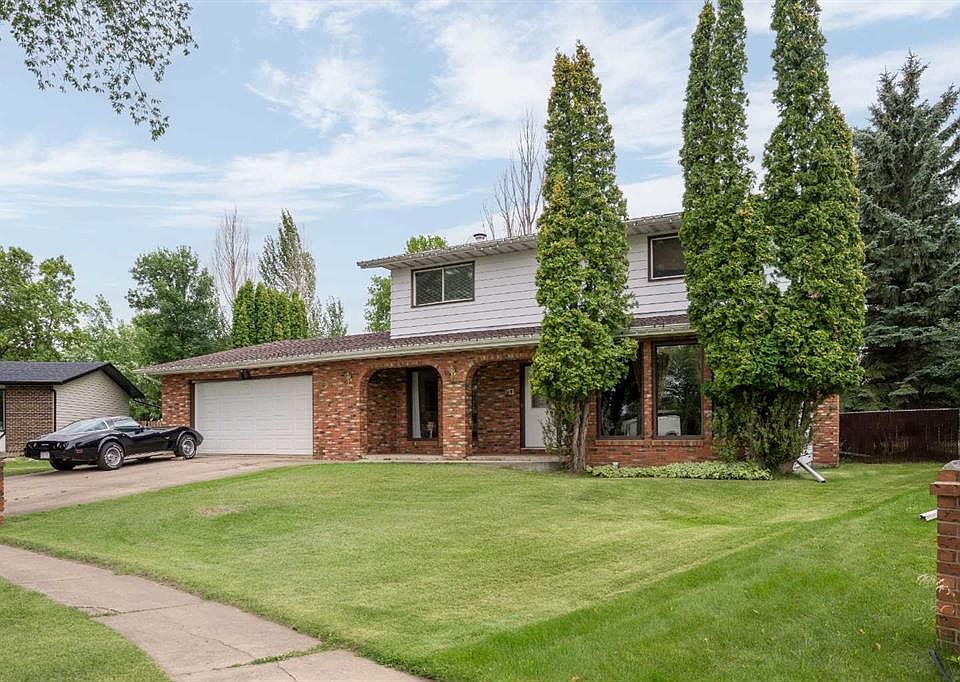 Tired of small lots and cookie cutter new builds? Welcome to a home full of character, space, and warmth in one of Camrose’s most desirable cul-de-sac locations with a massive lot. This two-storey blends the charm of an established home with the practicality and comfort your family needs. Set back on a long concrete driveway, the entryway greets you with timeless brickwork, mature trees, and undeniable curb appeal. Out back, the fully fenced yard is one of the LARGEST you’ll find in Camrose — a private, treed retreat where kids and pets can run free. There’s room for a firepit, a huge garden, or even a backyard rink that could be the talk of the neighbourhood come winter. Add in a covered deck with a privacy screen, and you’ll have more than enough space to relax and entertain all summer long. Tons of parking a heated, insulated double attached garage is just the start. Out front, an oversized concrete driveway adds even more parking, while out back you’ll find a 40 ft RV pad, an additional concrete pad, and a large shed to help keep everything organized. Inside, the character is evident immediately highlighted by two fireplaces — a real stone feature in the family room and a real brick one in the study — along with warm lighting, timeless finishes, and thoughtful details you won’t find in modern builds. The layout is ideal for families: a bright living room, cozy family room, dining space with updated flooring, and a versatile study that can serve as a home office, library, or playroom. The kitchen ties it all together with tiled countertops, original charm, and a view of the backyard. Main floor laundry makes daily life even easier. Upstairs, four spacious bedrooms give everyone their own space, including a primary suite with a walk-in closet and 4-piece ensuite. One bedroom even has its own sink — the perfect touch for busy mornings and fewer arguments over bathroom time. Recently refreshed, the basement adds an entirely new dimension to the home. With a massive rec room, family room, and wet bar, it works equally well as a teen hangout, or extra space for guests. For entertainers, it’s game-day headquarters: wired for surround sound, room for a pool table, and a built-in sauna to sweat out the fun the next morning and get right back to normal. Character features like a hidden safe in the fireplace and a concrete bomb shelter/cold room add to the many unique touches you won’t find elsewhere. This home has been well cared for, with updates including 30-year shingles (~7 years old), hot water tank (2024), furnace servicing (2023), patio door (~8 years ago), sump pump, 100-amp service, and a manual transfer switch for backup power. Whether you’re a growing family craving more space, or buyers who want a home with personality and privacy, this a rare opportunity to put down roots in a one-of-a-kind property.