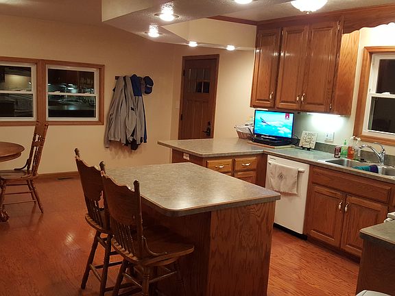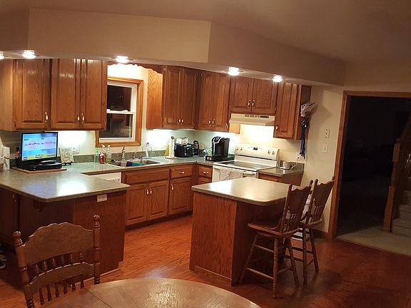 Covered front porch. 4 bedrooms and 2 1/2 baths in main house. Apartment over the 3 car garage with bedroom, living room, kitchenette and 3/4 bath. Small 12x 18 heated and cooled workshop. Small 9x 12 utility garage. Fenced in area for pets. Big yard. New deck built this summer. Some new windows installed this summer. Close to town in Seaman school district.