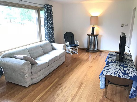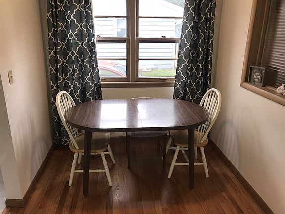 What a cute home! Beautiful hardwood floors throughout. Bright, sunny and spacious living room, spotless updated kitchen with refrigerator and dishwasher, cozy sunroom with leads to attached garage. One bedroom currently used a dining room. Large rec-room with plenty of storage, newer roof and 90+ GFA, updated 100 amp electric, fenced in yard. County tax rate! Very nice home!