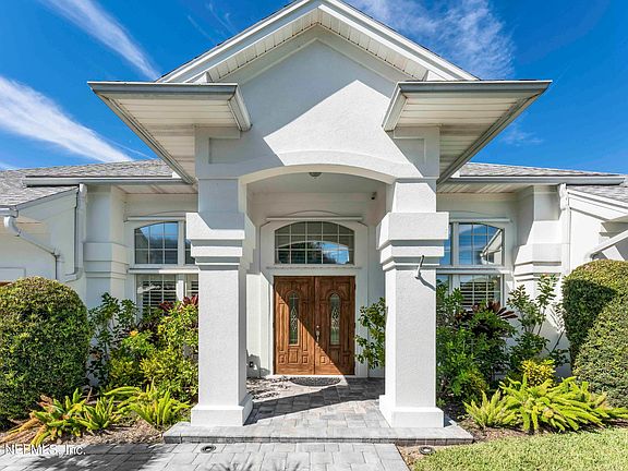 Location & lifestyle East of A1A! Just a short walk to the beach, minutes to MAYO and less than a mile to the Ponte Vedra Inn & Club. Enjoy resort style outdoor living in this single level turnkey pool home. 3 BR 3 full baths in main house plus a detached casita - 4th BR perfect for home office or gym. Updated modern kitchen opens to spacious great room. Office & living / theater with rotating tv have retractable walls allowing for flexibility of use. The backyard oasis has a 16' waterfall cascading into pool, covered outdoor kitchen cabana with fire pit, hot tub and pergola. Primary suite opens directly to pool to enjoy the sounds and views of the spectacular rain curtain. Custom closets. Large fenced backyard. Outdoor shower & half bath off pool area complete this dreamy beach retreat!