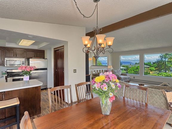 Beautifully updated split-level home with fantastic city, mountain, and water views! Quiet dead-end street not far from Hwy 20 and downtown Anacortes. Spacious home and appealing floor plan, with 3 bedrooms, one full and two 3/4 baths, a large rec room, and two cozy gas fireplaces. Fenced large yard with room for garden and RV, big deck for entertaining and enjoying the great views!