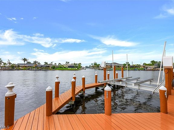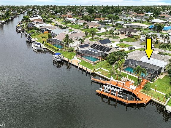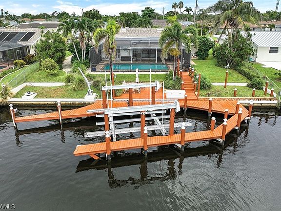 SERIOUS BOATERS! Got a Go-fast or Cigarette boat? This is your new home! Check out the EXPANSIVE 3-way INTERSECTING Canal view from this GORGEOUSLY UPDATED & METICULOUSLY MAINTAINED western exposure salt water POOL HOME in the heart of Cape Coral IDEALLY LOCATED for QUICK ACCESS to some of the best fishing & boating in SW Florida! There was NO STORM DAMAGE on this property during Ian or any other event. FLOOD INSURANCE IS ASSUMABLE on this property, and the buyer will have coverage paid through next July. Live the GOOD LIFE in PARADISE while you Enjoy your 27,000 lb boat lift, Captain's Walk, concrete dock & davit that accommodate multiple watercraft up to 38' & 15' beam. From your sparkling pool & paved deck (with brand new pool pump!), enjoy the LONG WIDE VIEW down the intersection of San Carlos & Princeton Gulf Access canals. This home is IMMACULATE and suffered NO Storm damage! Roof 2021; A/C 2019; impact windows. Lovely paved courtyard entry, fountain & custom front door welcome you into the SPACIOUS Great Room with STUNNING WATER VIEW & EXQUISITE attention to detail: custom-milled trim, baseboards & fireplace; crown molding; large neutral tile on diagonal THROUGHOUT the home (NO CARPET); granite counters; high-end appliances; upgraded fixtures & hardware. TRUE Chef's Kitchen features built-in fridge, immense center island, soft-close drawers, solar tube, pantry & slide-out shelves. SO MANY EXTRAS . . . Custom closet cabinets, can lights w/dimmers, 3 laundry tubs; lushly landscaped fenced yard with walkways & outdoor rooms all around! Travel time to the Gulf is about 30 minutes with one 9.25' bridge.