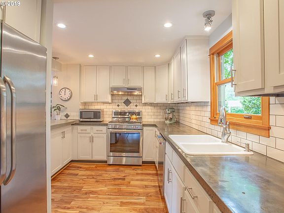 Enjoy peace and tranquility in this SW home. Features radiant heated floors,vaulted ceilings,new wood floors and possible guest qtr. Updated with concrete counters in the kitchen and Acaia wood floors in living and kitchen. Family room has radiant heated concrete floors, high ceiling and rock fireplace. Large master suite w/ fireplace and private veranda. Walking distance to Jackson Middle School and minutes to Multnomah Village!