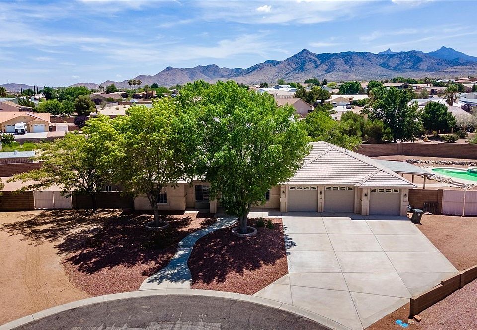Amazing custom home with a beautiful swimming pool located in prestigious Hualapai Mountain Estates. Located at the back of a cul-de-sac on a 0.61 acre lot this home has lots of room with 2708 sq ft of living space, 4 Bed, 3 Bath, a Den and a 14 x 28 Game Room with a half bath located at the pool patio. Fireplace in the living room, vaulted ceilings, decorative shelving, a sky light in the kitchen, walk-in pantry, casual dining in the kitchen, bar seating at the kitchen counter and a formal dining room. This home has lots of living space with many options of use. Huge master bedroom suite with a large walk-in closet, dual sinks, a walk-in shower and large garden tub. Beautiful large swimming pool with a hot tub and a large natural gas heater to keep it at the perfect temperature and an outdoor shower under the pool patio. The pool is currently on chlorine but it's set up to be able to use salt water. The front and back yards are completely landscaped with beautiful mature trees & shrubs and 3 giant beautiful palm trees out by the pool. The entire back yard is fenced in with a block wall for privacy while you're cooling off in the pool and back covered patio area. Do you need extra parking? This home has it with a separately fenced side yard measuring at 52 x 82 with a 11.5' wide RV gate with plenty of room to park all the toys! Some of the furnishings and art work are negotiable. You must see this home to appreciate all it has to offer, call to tour this amazing home today!