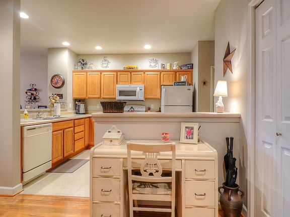 Welcome to this versatile open floor plan that offers a casual living flow. Great for entertaining or just relaxing & the kitchen has plenty of prep space for the chef. Attractive laminate flooring welcomes you from the entry hall throughout the living area. Cozy up to the gas log fireplace for these cooler winter months. Two generous sized bedrooms one being the master suite with two closets and private bath. Second bedroom has a large walk in closet . You will be pleasantly surprised with all the storage. Built in shelves in the garage for all those extras. Monthly fee covers lawn care, snow removal, exterior building maintenance, and trash. The bonus commons building has a great exercise room with all new equipment, swimming pool, rec room with full kitchen and bathrooms with shower facilities. Summer will be so much fun... Condo living at its best. Guiding you home!