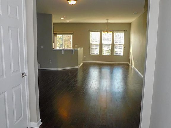Fantastic end unit townhome in Highland Creek! Hardwood floors throughout open layout first floor! Large family room! Kitchen has beautiful dark cabinets, granite countertops, stainless steel appliances! Large master bedroom with trey ceiling & great natural light! Walk in closet! Master bath has dual vanity & shower/tub! Great sized guest bedrooms! 1 car garage! Backs to retention pond! Great community amenities!