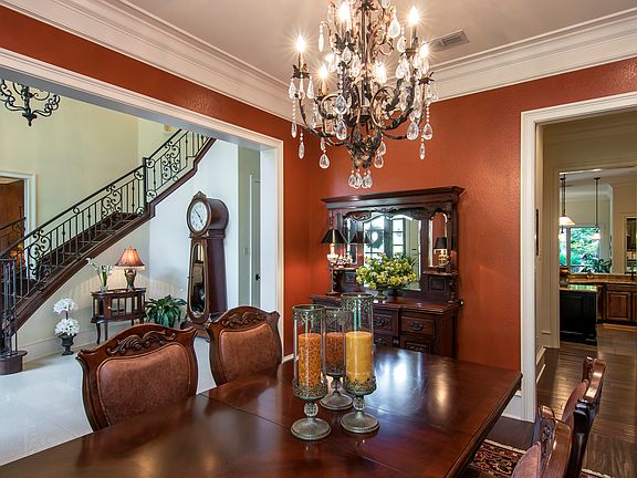 French charm and southern luxury are baked into this well-appointed Scott Hamilton design. Soaring ceilings and sweeping windows spill tons of natural light into the open living areas. Palatial foyer. Impeccable home. Private backyard hosts infinity pool and spa with privacy fence and wide views of the woods and creek behind. Formal dining, butler's pantry, office, 2 spacious living areas (with HD projection room), Chef's Kitchen with island and breakfast bar, master with fireplace and patio access. Gorgeous hand-scraped wood floors. Custom touches throughout. Gated Community. Spring Hill ISD