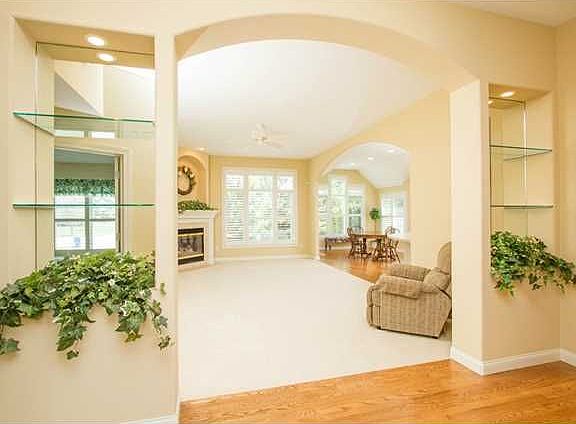 Desirable ranch villa w/full bsmt. In perfect condition. 3 beds, 2 full baths. Energy star built by Moline. Open design. High ceilings, hardwood, carpet & tile floors. Cheery kitchen flows to dining/sunroom & opens to stamped patio. Lovely mstr. suite w/solid surface dbl. vanity, jacuzzi tub, walk-in shower & walk-in closet. Custom plantation shutters. Full carpeted bsmt. plumbed for bath.