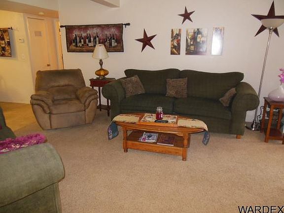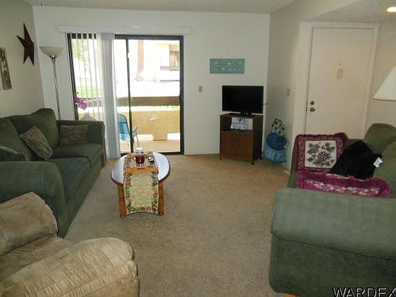 LOOKING FOR THE PERFECT GETAWAY? THIS IS IT! IMMACULATE 1BDRM/1BATH, FURNISHED 1ST FLOOR UNIT, LUSH LANDSCAPING, TALL MAJESTIC PINES, RV PARKING NO CHARGE. 4 POOLS/BAR-B-QUE AT EACH POOL. 1 CAR DETACHED GARAGE, ASSOCIATION DUES COVER WATER,TRASH,SEWER, AND BASIC CABLE. SUMMER TIME ENJOY THE BEAUTIFUL COLORADO RIVER OR LAKE MOHAVE, WINTER THE MILD WINTERS.