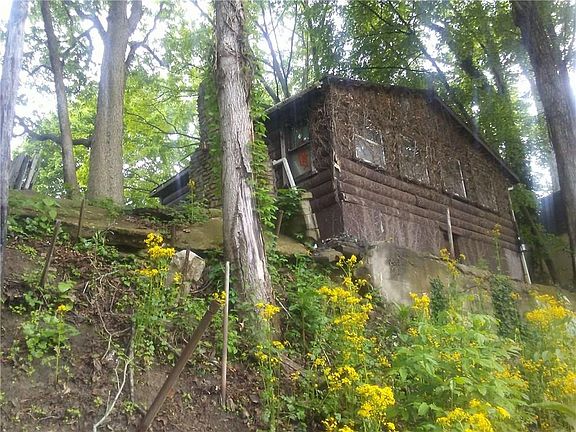 Absolutely charming riverfront property. Build your dream home overlooking the Flat Rock river. Just over a half acre. Perfect setting for a stilt house or a tiny house The 2 improvements on the property both have structural damage. The main structure is completely gutted & in a state of disrepair.The detached 1 car gar, possibly could be re-stilted. Seller believes there are a well and septic on property.He has located a well head and septic clean out. Condition of both are unknown. 2-approx 300 gallon propane tanks included, 1 is believed to be full.Property is extreme sloping and overgrown. Property is being sold as is where is. Structures are unsafe and have no value, therefore no interior structure viewings without an offer. Cash only
