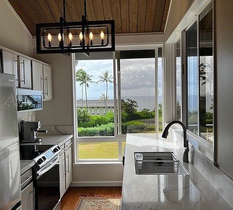 Enjoy resort living at this top floor, fully furnished 2Bd/2Bath loft unit providing ocean views, private lanais and resort amenities including two pools, two jacuzzis, tennis, pickleball, basketball, a keiki playground, putting green, BBQ areas, complimentary bike rentals and much more! Unit Features: *Master bedroom w/ king-sized bed, en-suite bathroom w/ shower and private lanai *Upper loft bedroom w/ 2 queen-sized beds, closet and lower level bathroom w/ tub/shower *Open lower level floor plan w/ vaulted ceilings *Daily trade winds w/ ceiling fans in all rooms *Fully equipped kitchen *Two private lanais offering ocean views and mountain/resort views *Washer/Dryer in unit *Complimentary WiFi *Complimentary cable television (basic service) Resort Features: *Two (2) unassigned uncovered parking spaces *Full Business Center available 7am - 10pm daily *Community Clubhouse w/ books, games/puzzles, DVDs *Fitness Center *Walking Path/Bluff overlooking ocean *Weekly guest/resident activities and socials *Various food trucks scheduled weekly Monthly rent $4,800, prefer minimum lease of 6 - 12 months but would consider shorter terms, rent includes WiFi, basic cable tv, water/sewer, parking, owner-paid State of Hawaii GET (General Excise Tax of 4.712%) Security deposit 1 month plus 1st month's rent to move in, available April 1st or April 15th! Tenant pays for electricity; prefer lease for 6 months - 12 months; unit available April 1st, April 15th, May 1st; no smoking in unit