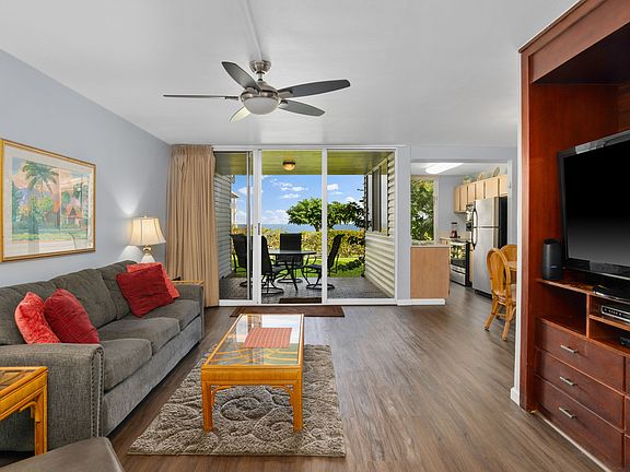 This home has an ideal flow that brings in nice light & can welcome a tropical breeze, keeping you cool & comfortable. The highlight is the breathtaking view of the Pacific Ocean. Perched high above the ocean, you get a bird's eye view of its beauty which can be enjoyed from the galley kitchen, patio seating area & the living room.It is the place to simply sit back,relax & take in all the beauty of Kauai.