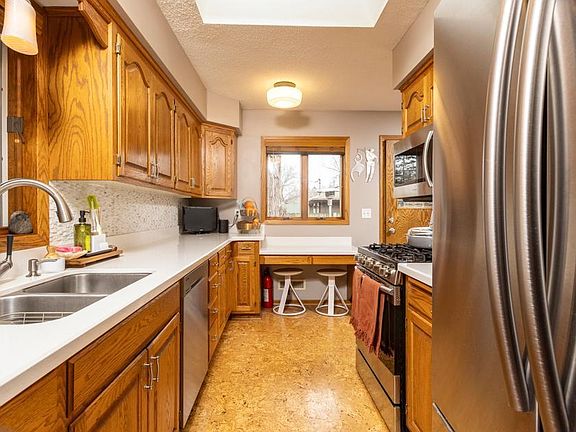 Set in a sought after neighborhood, this home celebrates careful craftsmanship, charm, and character with the benefits of modern upgrades for today's lifestyle. The living room offers the ambience of a cozy gas fireplace, with gleaming hardwood floors connecting the spaces throughout the main level. The kitchen yields both function and luxury, with its cork floors (has natural anti-microbial properties), beautiful quartz countertops, tile backsplash, and stainless appliances. A functional breezeway, dining room, two large bedrooms, and stunning full bathroom complete the main level. The lower level features the spacious primary suite with a full bathroom, walk in closet, and nearby laundry for the ultimate convenience - all with the most elegant, quality finishes. Once outside, you'll love the massive deck that's well suited for entertaining. The fenced in yard provides privacy and lots of space to run and play. Located near shopping, restaurants, and parks. Simply move in, and enjoy.
