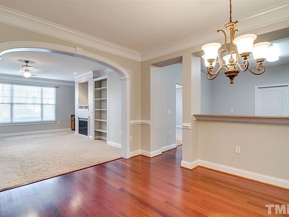 Gorgeous condo in prime Raleigh location minutes from shopping-dining-540. Move in ready, first floor (no stairs) 2 bedroom 2 bath. Spacious living area with built-in desk, cabinets, bookcase. Cozy Fireplace. Dining area and kitchen feature beautiful wood floors, solid surface countertops, 42" cabinets, and stainless steel appliances. Master bath has soaking tub and separate shower. HVAC only 3 years old. Internet, cable, fitness center and conference room are part of HOA. Fridge, washer, dryer convey.