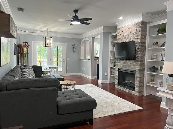 Gorgeous 2 Bedroom 2 Bath 1st Floor End Unit in Prime Raleigh location! Beautiful wood floors, custom trim and modern lighting throughout. Family Room with stacked stone fireplace and built-in shelves. Wonderful Kitchen with Corian counter tops, plenty of cabinets and stainless steel appliances. Spacious Dining area. Owner’s Suite with barn doors and walk-in closet with custom closet storage system. Cute balcony with storage closet. Laundry Room with shelving, cabinet and utility sink. On-site Fitness facility and Conference/Gathering Room. Cable and internet included with HOA dues.