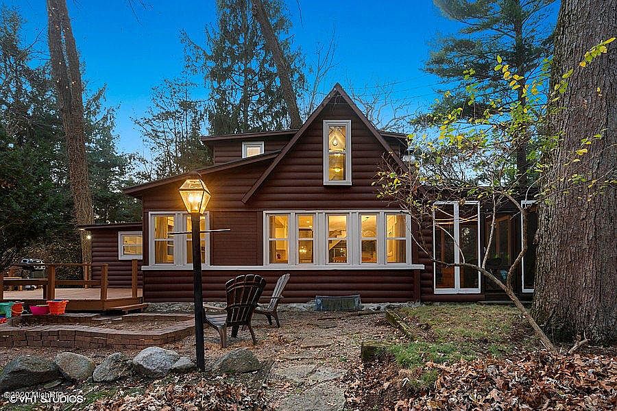 1930'S split log sided cottage with LOADS of vintage charm, dedicated beach access and some super upgrades - newer roof, CA unit 2 all new baths, new windows with transferrable warranty. Original small main rooms have been opened up to a super space you won't want to leave with fieldstone fireplace, lots of natural light, built-in window seat and original wood floors. Refurbished kitchen cabinetry is accented by Kraus sink and faucet. By cottage standards there's a large main floor bedroom and private door to bath. Back deck has easy access to generous laundry with much needed face lift. Want quiet outside space - screen porch with fire pit close by. Second floor - huge bedroom with bath and generous walk-in closet complete this great cottage. Little over 0.2 mile easy walk to Lake MI to view some glorious sunsets! Can be turn key -
