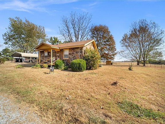 The perfect cozy cottage at a great price point, with a phenomenal view DOES exist! This well-kept rock home is as cute as it is functional. This 980 sf. home packs a lot into its space with 3 bedrooms, a well-appointed kitchen with dishwasher/range/& new fridge, and a full size bathroom with additional storage. The laundry room is spacious enough to add additional storage-- and, best of all, the newer washer & dryer convey! Unlike anything else at this price point, the .5+ acre lot is a hobbyist dream with enough room for a garden or small shop! But the real beauty are those wide open views offering stunning sunset views and total peace & serenity around a fire pit. The 2 car metal carport will keep your cars protected from the elements. Nestled at the end of a small lane, this cottage offers tranquil living while just a stone's throw to everything in NWA! For buyers peace of mind, home comes with 1 year home warranty!