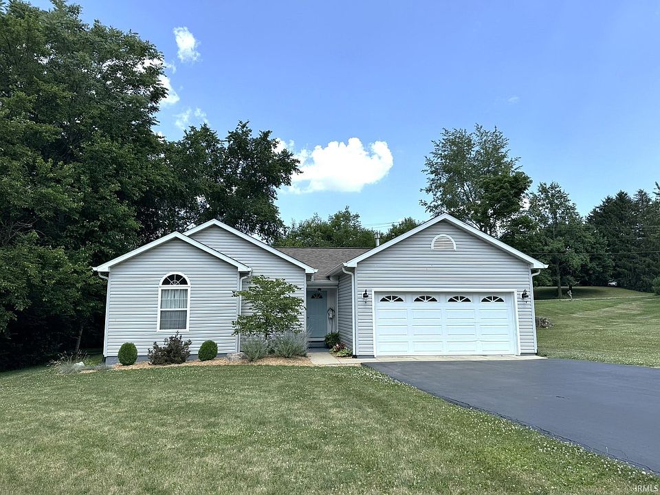 Immaculate Ranch nestled on the woods edge of Brookhaven Subdivision. This home is right sized to perfection featuring a split concept layout for privacy. You can make memories in the beautiful kitchen with new stone counters, and newly made peninsula open to the dining room with a wall of windows and sliding door out to the new composite deck with an eastern view perfect for sipping your morning coffee and watching the wildlife. The sizable great room has updated low care vinyl flooring, new gas fireplace and arched windows. The primary suite is generously sized with a private bath and walk-in closet. At the opposite end of the home are the 2 additional bedrooms with ample closets, updated bathroom and a laundry tucked into a large hall closet with tons of shelving. The garage has a matted cushion floor for comfort and many adjustable wall shelves. Updates include new dining room windows, fresh interior paint, stone counters, motion detected light switches, new roof and siding 2022. $125 Annual HOA for pond maintenance.
