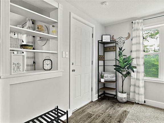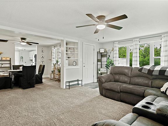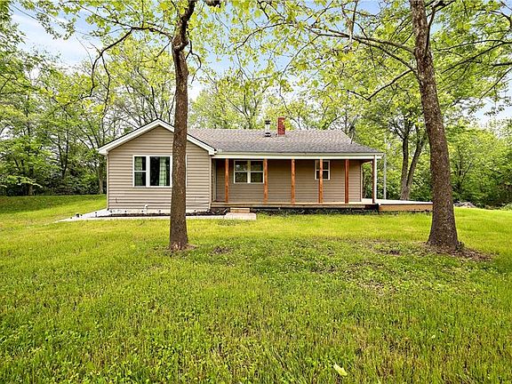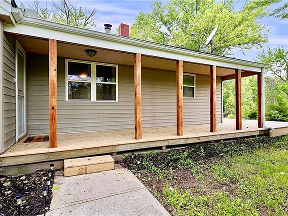 Welcome to your charming raised ranch nestled on 3 wooded acres in Holt, MO. Located in the highly sought after Kearney School District, this home features 2 bedrooms, 1 bathroom, and a 2 car garage. Upon entry, you're welcomed into the living room, leading seamlessly into the dining area and onward to the kitchen, adorned with granite countertops and tile backsplash. Off of the dining room, there's a door leading upstairs to the spacious attic. Down the hall, discover two bedrooms, each boasting a walk in closet, with the bathroom situated between the two rooms. The unfinished basement hosts utility amenities including the washer and dryer, alongside the two car garage and additional storage space. The wrap-around porch is easily accessible from either the kitchen or the living room.