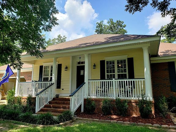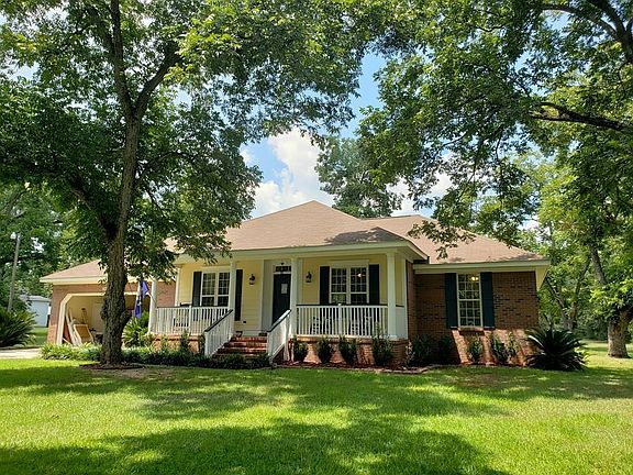 Quiet, country living in a custom-built home only 10 miles from town! This beautiful, 4 bedroom 2 bath home features new hardwood floors, specialty 9' ceilings, crown and base mouldings, and new paint throughout. Spend some time sipping coffee on the rocking-chair front porch or maybe even a glass of sweet tea on the large deck overlooking the shaded backyard...then come inside to comfort! The home has a split-floor plan with 3 bedrooms with ample closet space, and a nice-sized shared bath to the right side of the home, while a large master suite is situated to the left rear of the home. The master bath has a double vanity, jetted tub, a separate shower, and potty room. The family room is the central point of the home. It is spacious and has beautiful hardwood floors and a specialty ceiling. The kitchen has plenty of space for everyone to pitch in! You'll love the new dark wood cabinets, granite counter tops, tiled backslash, and stainless steel appliances! There is also a raised counter for additional serving space, breakfast, or entertaining. At the rear of the home, overlooking the backyard and large deck, you'll find an enclosed sun room. This could be used as a reading nook, home office space, or maybe even add an additional half bath. The dining room and laundry room are just off the kitchen as well as access to the 2-car garage. The roof and HVAC are both less than 2 years old and the septic was recently serviced and inspected and found to be in excellent condition. The property includes lots of nut-producing pecan trees, and a custom outbuilding/well house. Conveniently located less than 10 miles from retail, restaurants, healthcare providers, multiple options for public and private schooling, and university and trade-school facilities. Don't miss out on this wonderful opportunity!