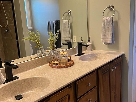 Immaculate 3 Bed 2 Bath SW Home! USDA Eligible! Open floor plan with wonderful kitchen. Mark Hall cabinetry, stainless appliances, island, pantry, formal dining room! Flat driveway and flat yard with berm on the back property line for ideal privacy! Water softener, security system, water filtration, upgraded bathroom vanities, wonderful landscaping, and MORE!