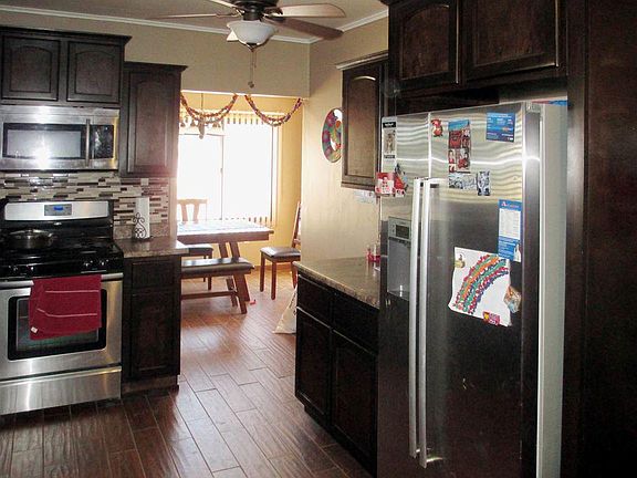 - Kitchen Featrs: Gas Range/Oven, Tile Flooring, Solid-Surface Countertops, Refrigerator, Microwave