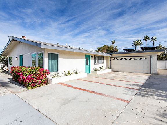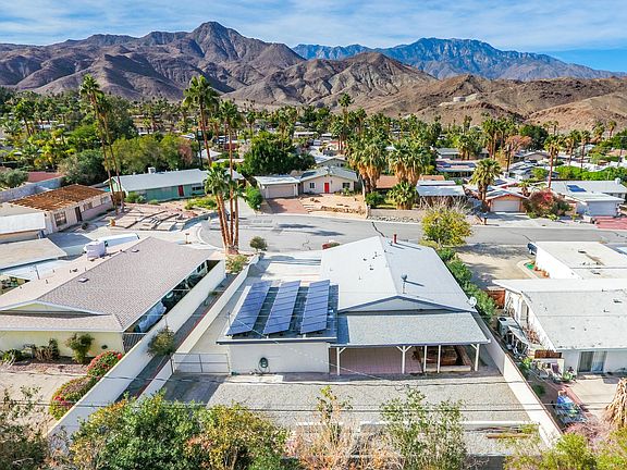Welcome to this newly remodeled Mid-Century jewel on a quiet cul-de-sac located in the highly desirable Cathedral City "Upper Cove" area with beautiful views that include the San Jacinto Mountains. This 4 bedroom 2 bath home has a PAID IN FULL SOLAR SYSTEM included. You can save on Edison payments from Day 1 while using your central heat and air conditioning to keep you comfortable year round. This home has a completely UPGRADED Kitchen with all new cabinets, quartz counter tops, and all new appliances. This home also has 2 fully UPGRADED and remodeled bathrooms with all new Fixtures, Vanities and Showers. This home has Brand New 24” tile flooring throughout with all new interior paint, new doors, trim and baseboards. The master bedroom has French doors that lead out to a covered patio with an above ground spa and plenty of entertaining space. This Home has a two car garage with plenty of additional parking in the driveway - as well as RV parking on side of home. There is plenty of space for ALL your vehicles. Come see this AMAZING home before it is gone