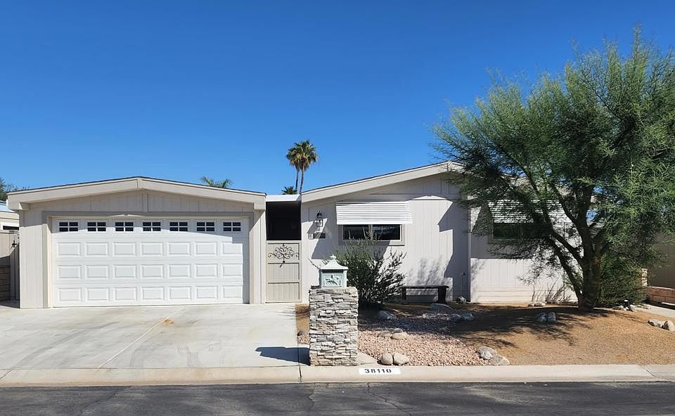 Located within the Palm Desert Greens Country Club is this gorgeous home. Custom everywhere and the workmanship is outstanding. Two ensuite bedrooms at opposite ends of the home offer privacy for you and your guests. The tile and flooring in the bathrooms is natural travertine and limestone. Laminate is throughout the rest of the home. Skylights in the living room cathedral ceilings with shades add soft lighting. Granite and beautiful cupboards, and stainless steel appliances plus a great pantry make you want to cook a meal! Six inch baseboards are always special. The outdoor fountain on the patio adds to the peaceful charm and lushness of Palm Desert landscaping. The flooring in the garage and on the patio are custom textured with special paint. The facade garage is amazing. You really have to see it to appreciate the design. Included in the HOA is cable TV and internet along with free golf!