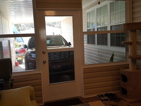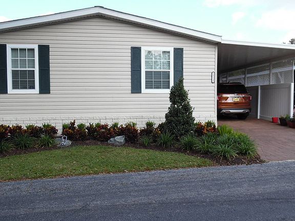 THIS HOME IS ON LEASED LAND WITH A MONTHLY LOT RENT. 2016 JACOBSEN WITH MANY RECENT UPGRADES HAS 3 BEDROOMS/2 BATH. LARGE AND CLEAN WITH LOTS OF BRIGHT WINDOWS. THIS HOME HAS A 2017 FLORIDA ROOM, LANDSCAPE, CEILING FANS AND MUCH MORE. RAMBLEWOOD VILLAGE IS A 55+ COMMUNITY, PET FRIENDLY PARK WITH A LOW LOT RENT OF $425 AND THAT INCLUDES WATER. SEWER, LAWN AND GARBAGE. FLORIDA ROOM 11'5"x 11'5" New 2017, Double Pane Tinted Windows, beautiful Paver Floor that was sealed 2017, new Crank roll down Solar Blinds, new Lighted Ceiling Fan, off the private Driveway and Shed. Great Room and very Private. Furniture includes a Dark Wood Table with Wrought Iron Legs, a Tile Coffee Table with 2 matching End Tables. LIVING ROOM 14x20 Large and Open, tan Carpet, New decorative Lighted Ceiling Fan, 3 Windows that looks out over the Driveway, Opens to Kitchen. Furniture Included is a Brown Sofa with a Matching Loveseat. KITCHEN Lots of Space and Countertops, gorgeous Dark Wood cabinets, Tile Design Linoleum, lots of Light through the 4 Windows. Part of the Counters can be a Breakfast Bar, Garbage Disposal, Pantry, Cordless Blinds on all the windows. Appliances include a 2016 Black GE Glass top Stove, 2016 Black GE above Stove Microwave, 2017 Black Frigidaire Dishwasher and a 2017 Black Bottom Freezer LG Refrigerator. Eat-In Area is 10'8"x12 with a Dark Wood Decorative Table and 4 Matching Chairs. MASTER BEDROOM 12'6"x14 Carpet, New Leaf Design Lighted Ceiling Fan, located at the Back of Home, Large Walk-in Closet, Cordless Blinds. MASTER BATH 3'3"x 9'10" Dark Wood Double Sink Vanity with Matching Linen Shelves, Walk-in Shower with Bench and Grab Bar with Glass Door, Tile design Linoleum. BEDROOM 2 9'11" x 12'6" Carpet, New Lighted Ceiling Fan, Step- in, Wall Closet, Cordless Blinds over the Bright Windows, Queen Size Bed will fit in the room. Looks out the front of Home. BEDROOM 3 9 x 10'7" Carpet, New Lighted Ceiling Fan, Wall Closet, Queen Size bed will Fit in this Room, Built in Shelves along one wall, Cordless Blinds, looks out the Front of Home. MAIN BATH Dark Wood Single Sink Vanity, Tub/Shower with a Grab Bar, Tile design Linoleum floor, Solar Tube, Linen Closet in Hallway. LAUNDRY ROOM 4 x 5'8" Washer and Dryer are NOT included, does has Hook up, off Kitchen and Door to Side of Home. SHED 10 x 12 Off Florida Room, Large and has newly built Storage Shelves. EXTERIOR New landscape including Palm Trees along Home Paver Driveway was sealed 2017 1 Car Carport/ 2 car Driveway New Shutters on front home 2017 New Fence and Lattice Work along Driveway A/C Unit and Roof are 2016 Ramblewood Village is a Gated Community in Zephyrhills. Ramble wood is a leased land, active community. Country feel with rustic charm. Low lot rent includes water. sewer, trash , and lawn. Ramblewood Village offers a heated pool, shuffleboard, clubhouse with a billiards room and much more. 2 pets under 40 pounds are welcome. Close to medical and tons of great shopping. Centrally located to all major highways and a short trip to Orlando or area beaches. Motorcycles are also welcome. Yearly Pasco Solid Waste Fee is $134.00. "All listing information is deemed reliable but not guaranteed and should be independently verified through personal inspection by appropriate professionals. American Mobile Home Sales of Tampa Bay, Inc. cannot guarantee or warrant the accuracy of this information or condition of this property. Measurements are approximate. The buyer assumes full responsibility for obtaining all current rates of lot rent, fees, or pass-on costs associated with the community, park, or home from the community/park manager. American Mobile Home Sales of Tampa Bay, Inc. is not responsible for quoting of said fees