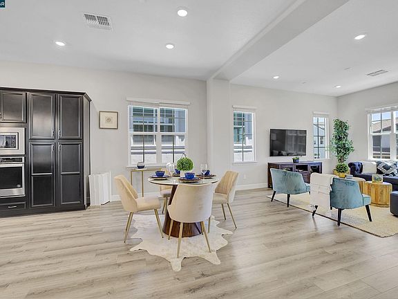 Nestled in the prime Irby Ranch community w top Pleasanton schools, this stunning home epitomizes modern living, tranquility, & convenience. It faces inwards to it's undisturbed community park. Upon entry, you're greeted by a serene courtyard & patio, setting the tone for the welcoming atmosphere within. An appealing first-floor bedroom suite offers a versatile space that can serve as an accommodation for guests or for use as a home office. Timeless sophistication shines through the upstairs living space, featuring soaring ceilings, w access to the balcony. The impressive kitchen features a center island, trendy cabinets, stainless steel appliances, quartz counters. Upstairs, the primary suite incl dual vanities & walk-in closet. Two additional bedrooms share the hall bathroom. Spacious laundry room adds practicality to daily routines. Tesla paid solar panels, recessed lighting, home security system, tankless water heater, water softener, finished garage. This community offers several different park settings to enjoy the children's playground & park along w/clubhouse. Conveniently located near, sports park, plentiful shopping, & entertainment. Easy freeway access.