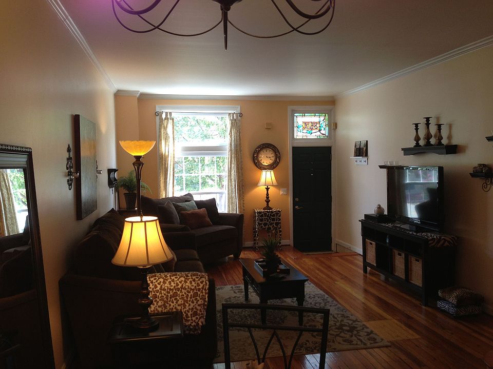 Don't miss this awesome home and value in Brewer's Hill. The block has nice large sidewalks with shady trees and lots of well-kept homes. Just inside the colorful front door and beautiful stained glass transom, you will find a wide living and dining room with 10+ foot high ceilings, original hardwood floors, and great light from a large picture window. The kitchen is spacious and updated with granite counters, exposed brick, stainless appliances, a gas range, and a large island. The second floor has 3 good sized rooms plus an updated full bathroom. The master bedroom has french doors, 2 large closets, and great light. The den is right off the master and has a large closet. The bathroom has a large skylight. The second bedroom has hardwood floors, a large closet with built-ins, and a balcony. The basement has brand new "wood-style" laminate floors, large closets, a full bath, laundry and workshop/kitchenette area, and a separate entrance out the rear of the home. Perfect as a bedroom, family room, or separate income suite. The home has a brand new roof. The parking pad can fit one mid-sized car. The lot is 14 X 70. Walk to Canton Crossing, Canton Square and booming Highlandtown. Easy access to 95/895, and JH Bayview.